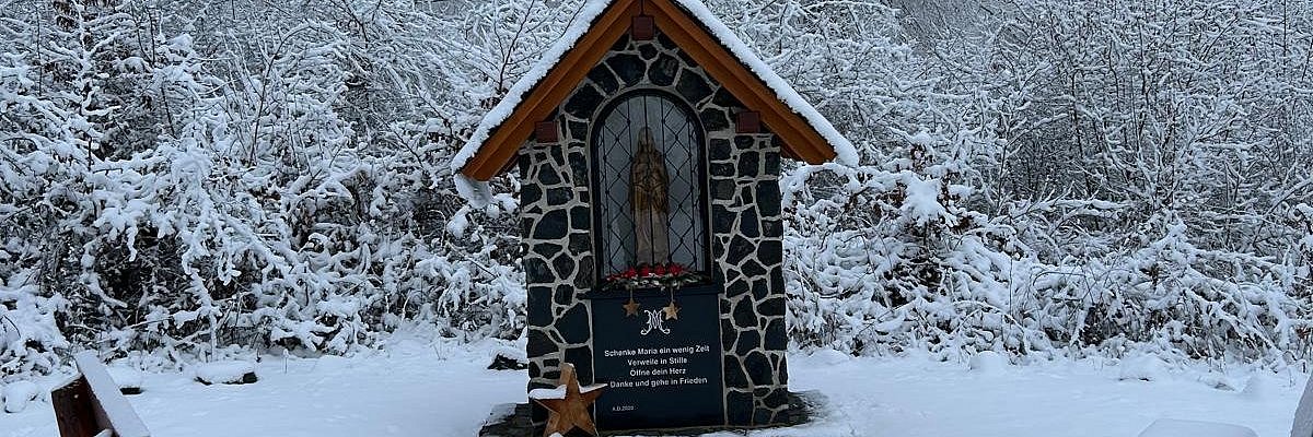 So war es zu Beginn des Marienmonats Mai den Herren Pfr. Hufsky und Diakon Bruns vorbehalten, den himmlischen Segen für die Marienfigur und den Bildstock zu erbitten und die Einsegnung vorzunehmen.