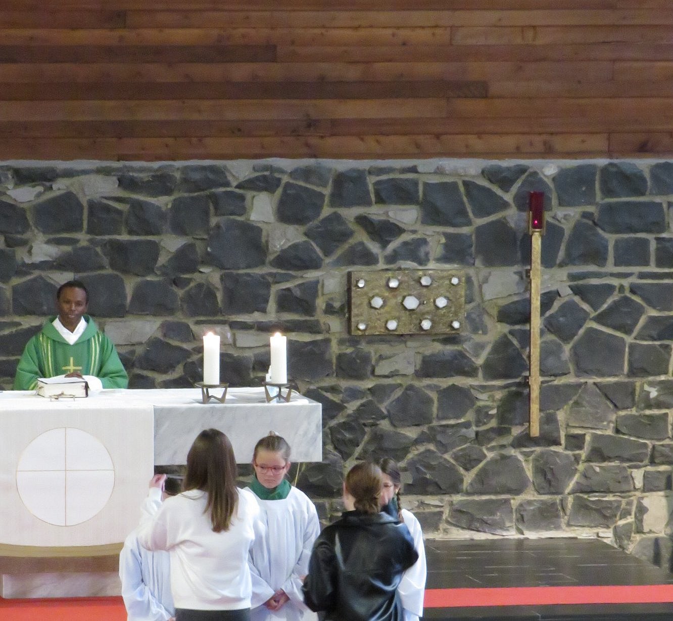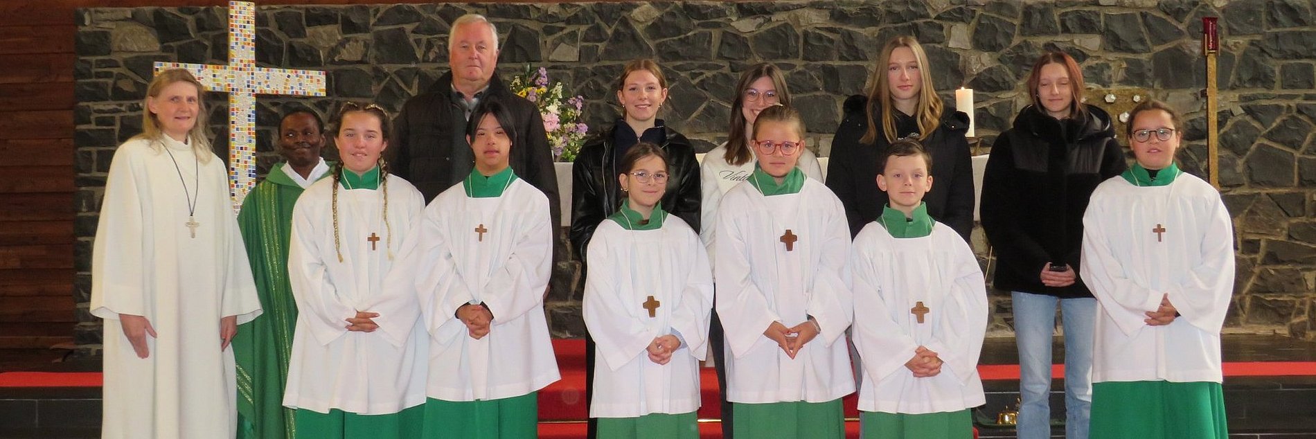 Am Sonntag, 26.10.2025, war es endlich soweit: Drei neue Messdiener*innen wurden in der Sonntagsmesse mit Pater Michael Remigius durch unsere Gemeindereferentin, Marina Jung, offiziell in den Kreis der Ministrant*innen aufgenommen und können nun unsere Messdienerinnen unterstützen!