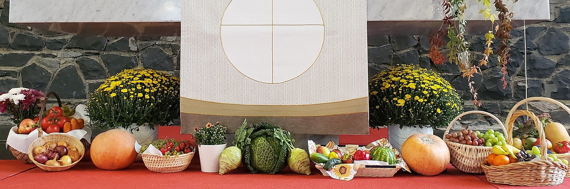 Festlich geschmücktes Gotteshaus zum Erntedankfest