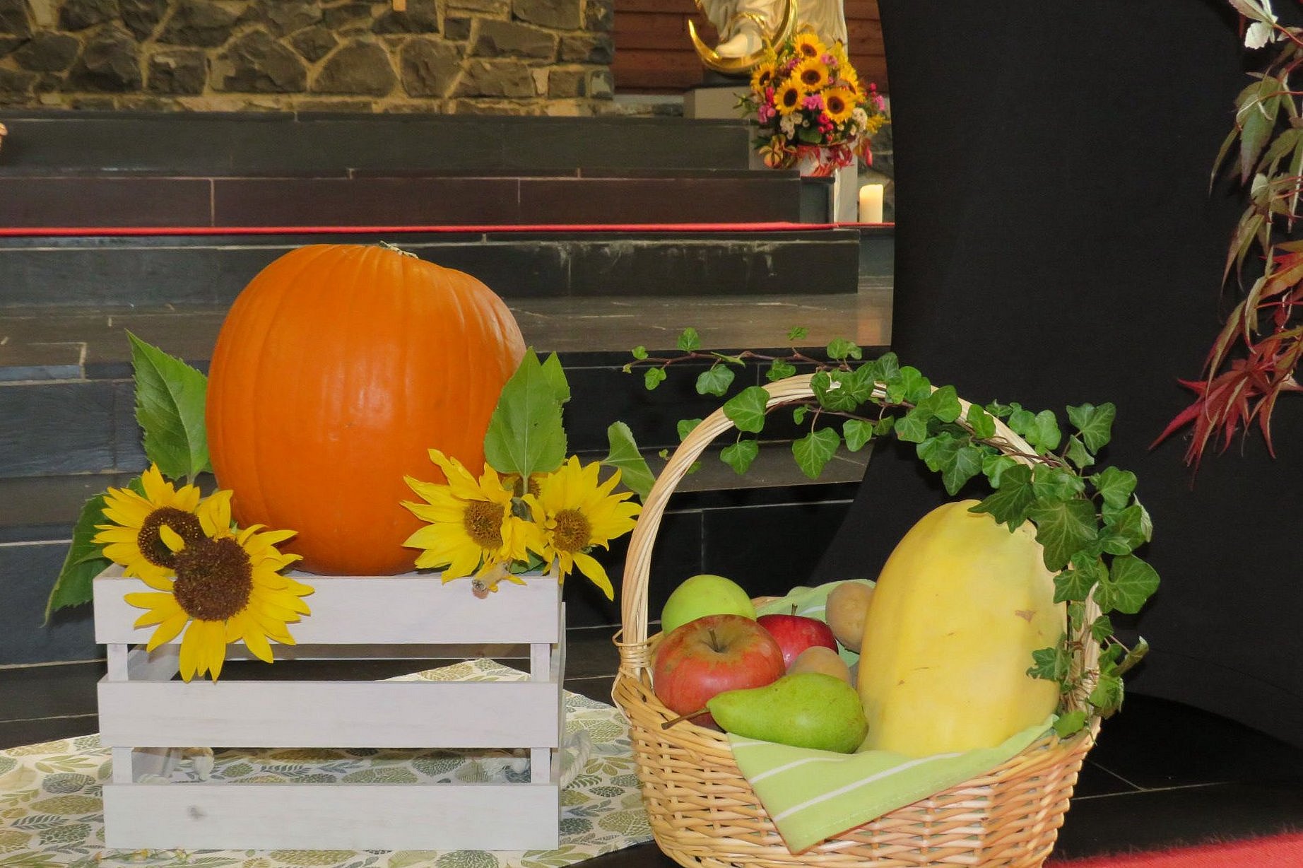 Festlich geschmücktes Gotteshaus zum Erntedankfest