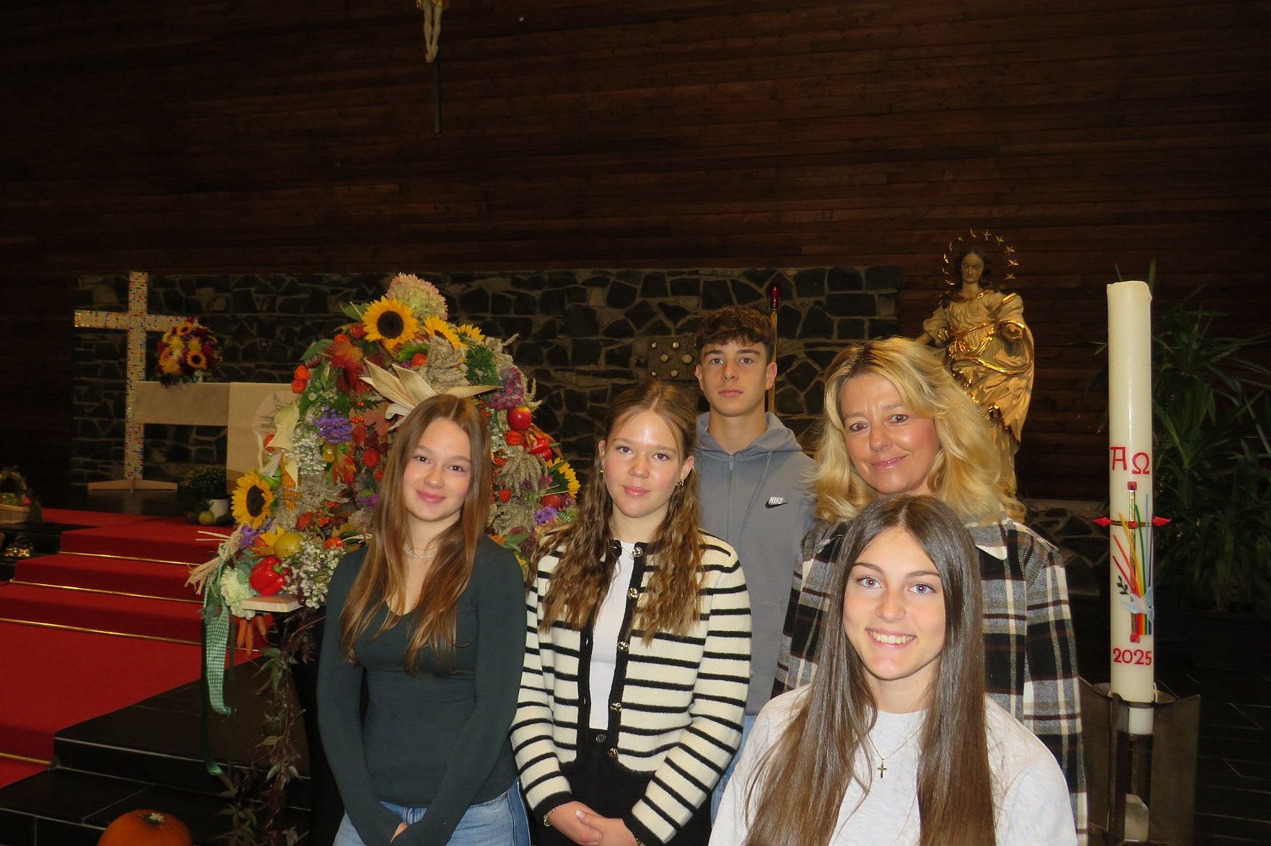 Manuela Horz hatte in diesem Jahr wieder die Organisation übernommen und die Erntekrone mit den „Firmlingen“ Lina Jung, Nick Metzger, Mia Reschke und Maya Sturm geschmückt.