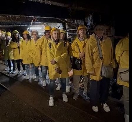 Die Damen starteten die Fahrt mit der Bahn untertage mit dem bekannten Bergmannslied (hier klicken)